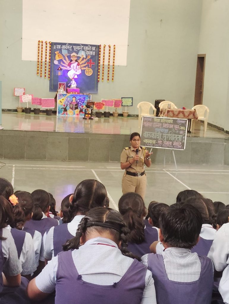 The school recently hosted a children’s safety session in collaboration with Nirbhaya Pathak, led by the esteemed representative Mrs. Amruta Bhoite. This informative and engaging program aimed to educate and empower our students with essential safety awareness and self-defense techniques.
